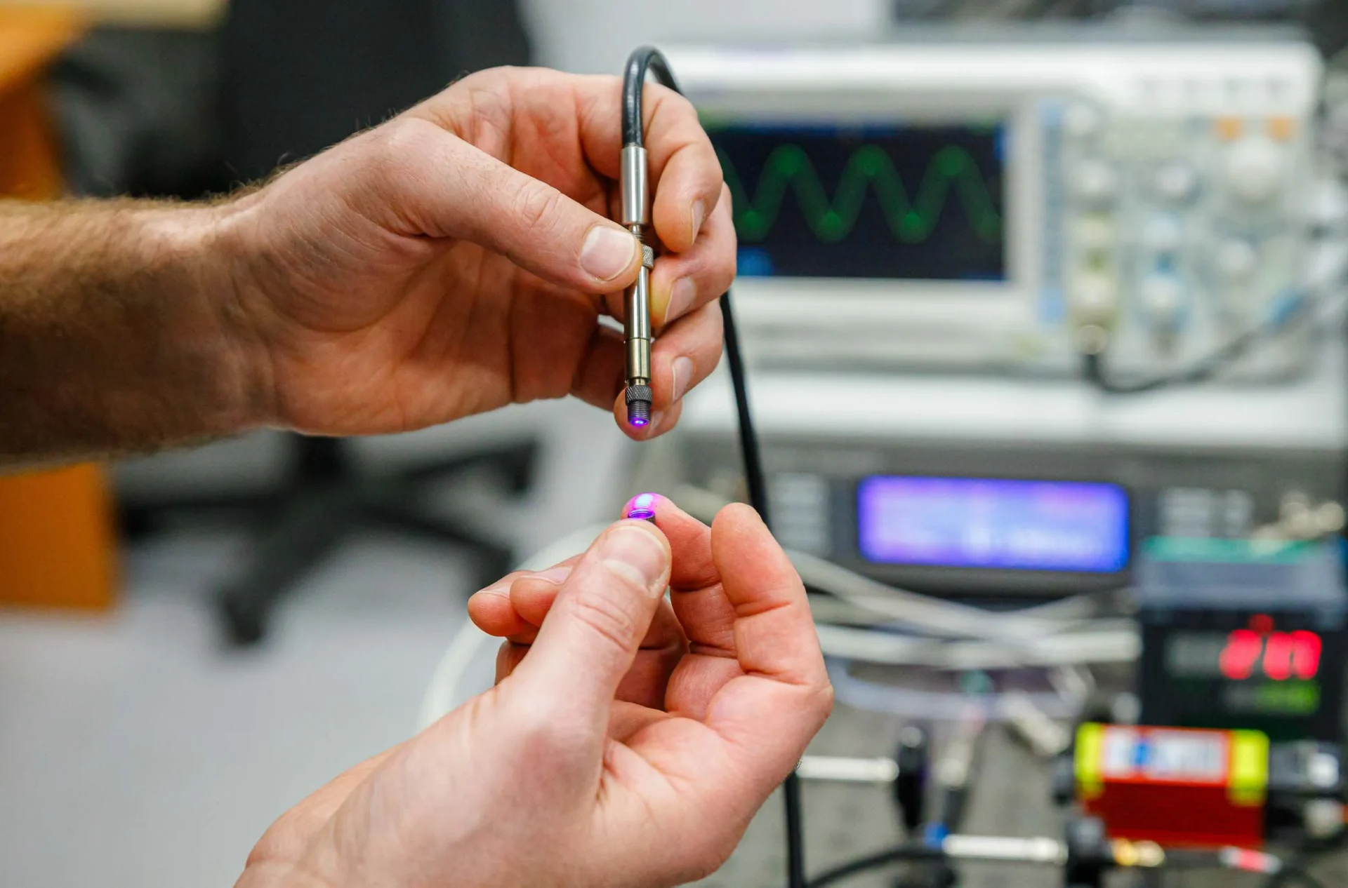 Izturīgs optiskais sensors, kas mēra temperatūru sarežģītos apstākļos – enerģētikā, ražošanā un aviācijas nozarē. Tas izmanto luminiscējošu materiālu, kas ļauj gan ierosināt, gan uztvert signālu caur vienu optisko šķiedru, nodrošinot vienkāršu un stabilu risinājumu.